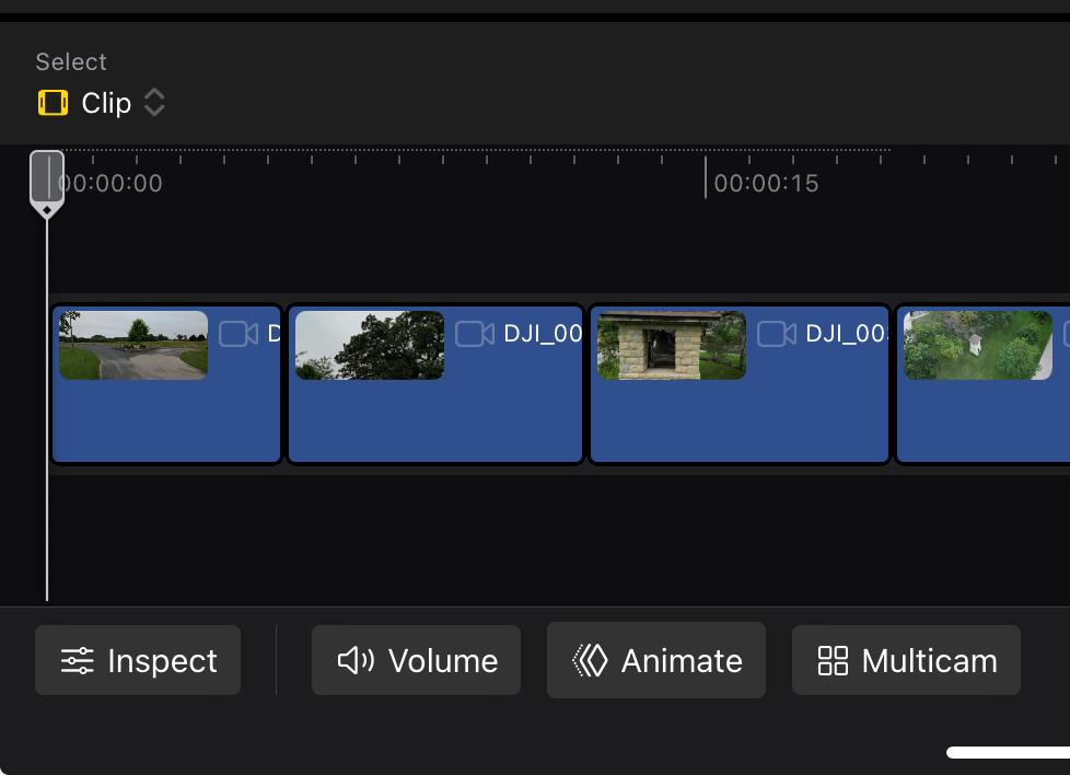 Another thing I discovered about Final Cut Pro is that it is not set up to easily edit a collection of photos into a quick, short duration video. I had to trim each picture down after importing them into my timeline.