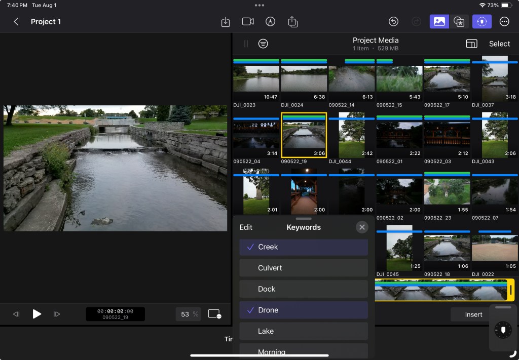 I am also beginning to remember what I must do to favorite a clip add a keyword so I’m developing a kind of muscle memory for final debt pro on iPad. That makes me feel pretty good.